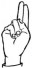 На ћирилици написано КОСТА ФИЛИПЧЕВИЋ састоји се из 15 слова [?]. Исписано ћириличном једноручном азбуком за глувонеме: